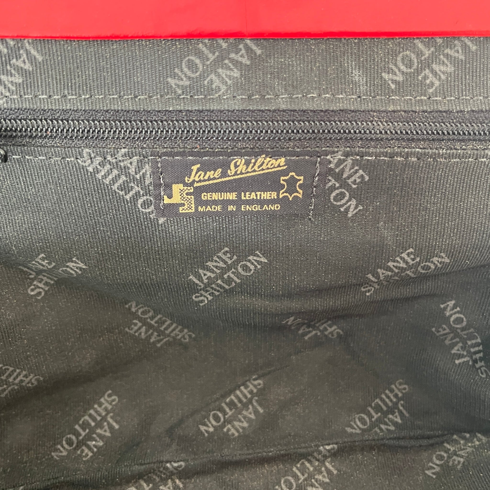 A gorgeous 60s/70s vintage dainty lipstick red butter soft leather clutch bag in excellent, virtually in pristine condition. It has a black silky monogrammed lining and is made in England by Jane Shilton, a popular brand which has moved with the times and is still making handbags today. It's a great quality clutch bag and gorgeous with the leaf shaped snakeskin inset to the front. Minor dust from the inner lining which doesn't affect the look or use of the bag. It's in a sought after lipstick red colour, with excellent condition leather and minimal marks or signs of use to the exterior. The gilt clasp is still shiny with no loss of gilt. The black silky grosgrain lining with the Jane Shilton monogram woven in is clean condition with no marks ore evidence of use.
